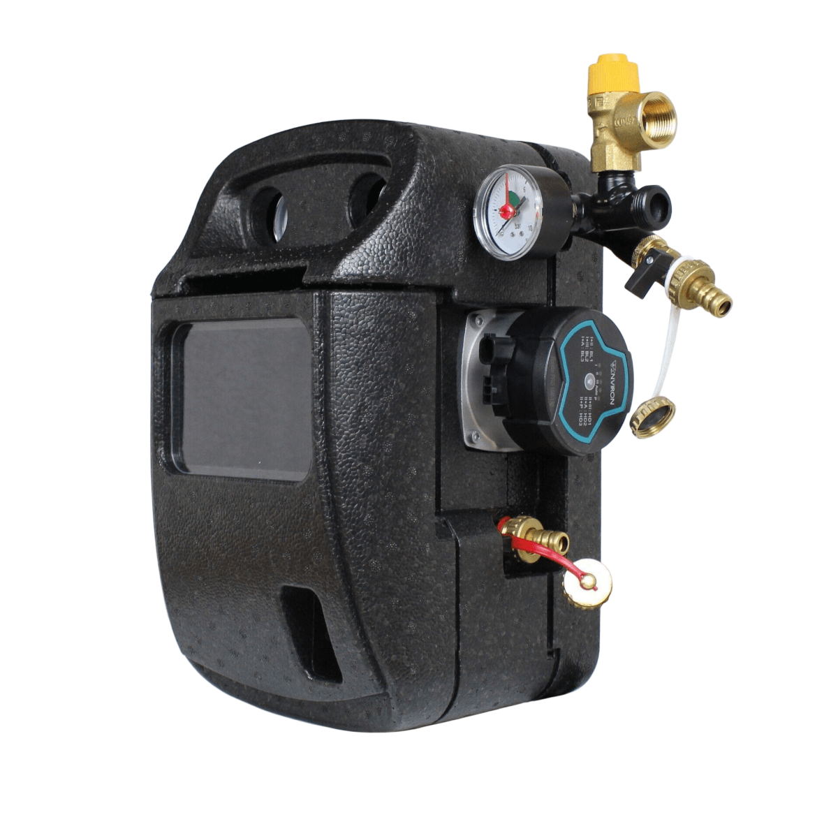Die Konstruktion sieht zudem einen flexiblen Anschluss für das Ausdehnungsgefäß vor, während das integrierte Solar-Sicherheitsventil und das Manometer für einen sicheren und kontinuierlichen Betrieb sorgen. Die seitliche Öffnung fördert darüber hinaus eine effektive Pumpenabkühlung, was insbesondere bei Dauerbetrieb von Vorteil ist.