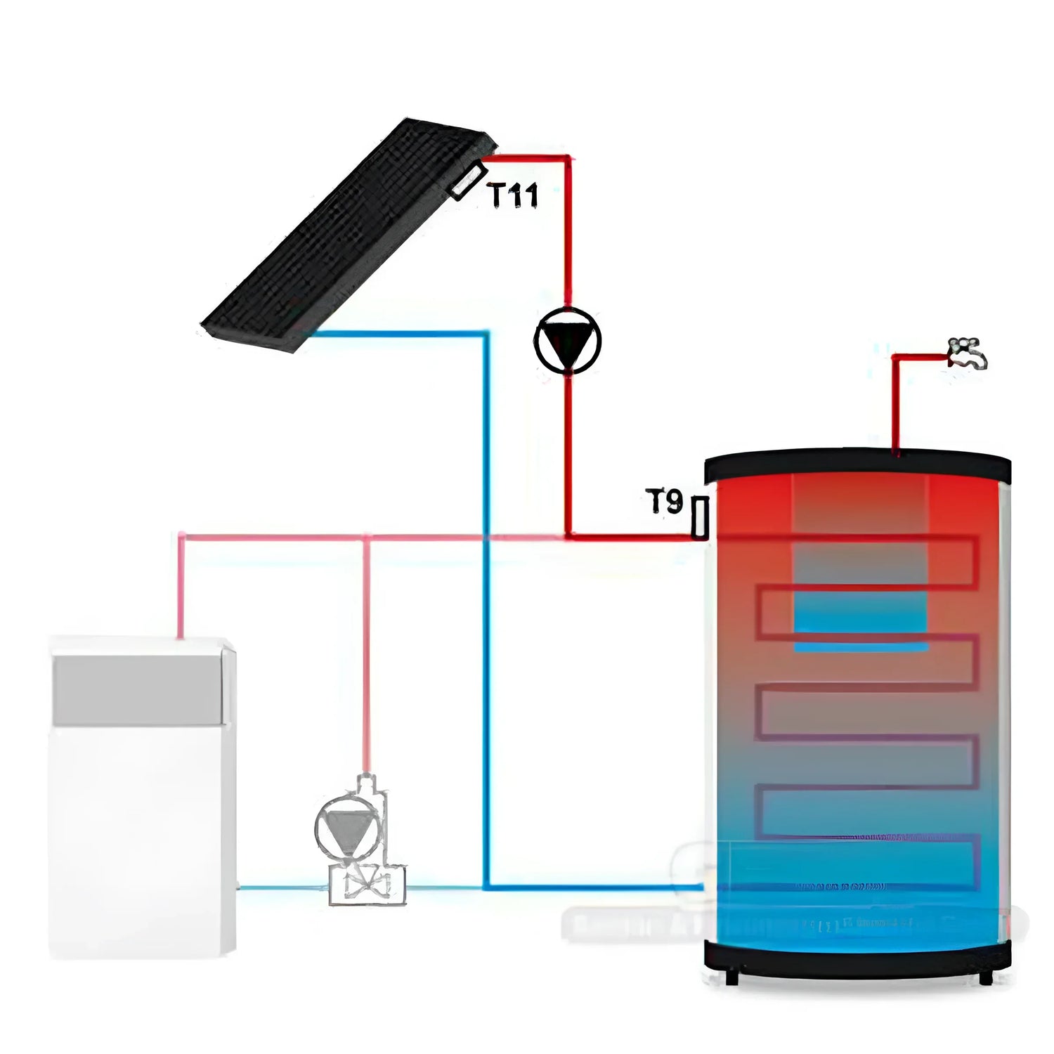 Der Temperaturdifferenzregler bietet flexible Einstellungsmöglichkeiten, die den Anforderungen Ihres Heizsystems gerecht werden. Der Betreiber kann den Differenzwert zwischen Wärmequelle und Speicher individuell anpassen, sodass der Regler optimal auf das jeweilige System abgestimmt werden kann. Ebenso verhindert eine einstellbare Hysterese unerwünschtes Takten der Anlage, was sowohl die Lebensdauer der Komponenten verlängert als auch den Energieverbrauch senkt.