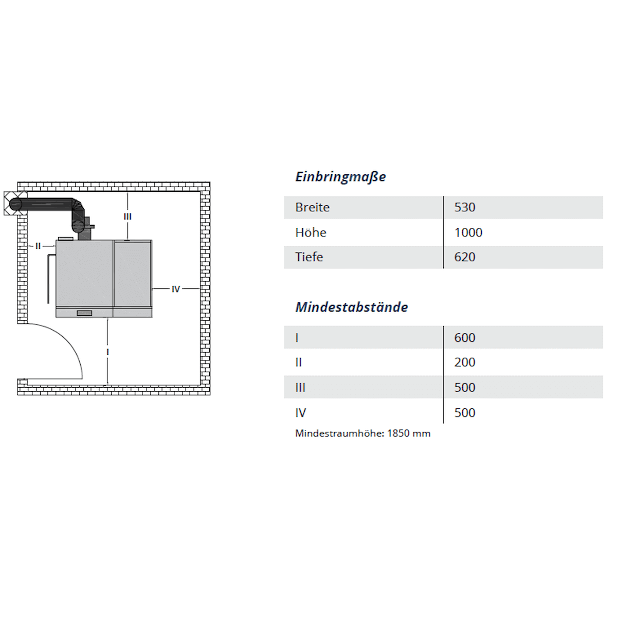 • Røgrørstilslutning 130 mm