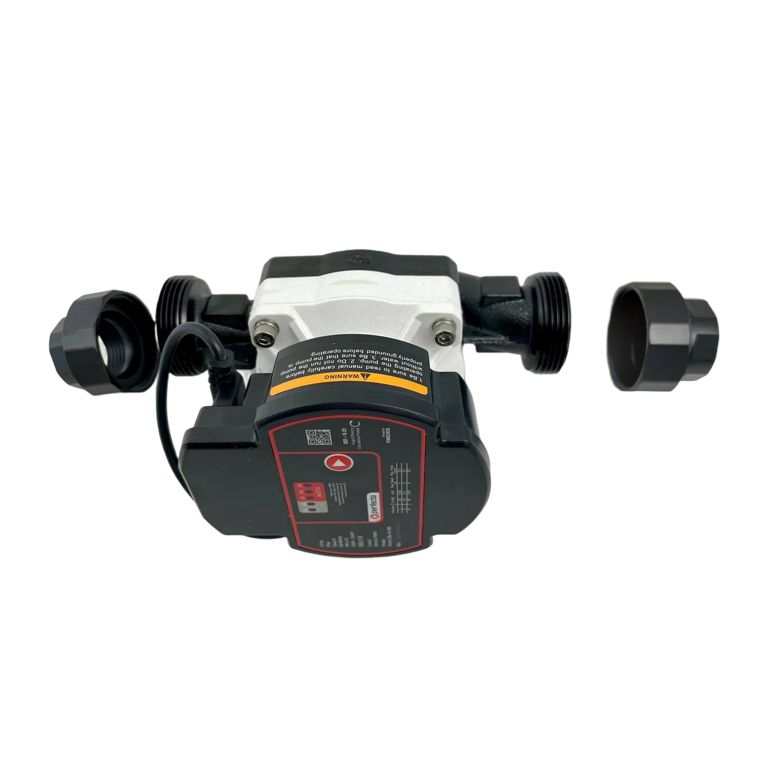Pumpen leveres inklusiv skrueforbindelse (1" indvendigt gevind og 1 1/2" omløbermøtrik), tætninger, tilslutningsstik og betjeningsvejledning - alt er tilgængeligt for hurtig idriftsættelse.
