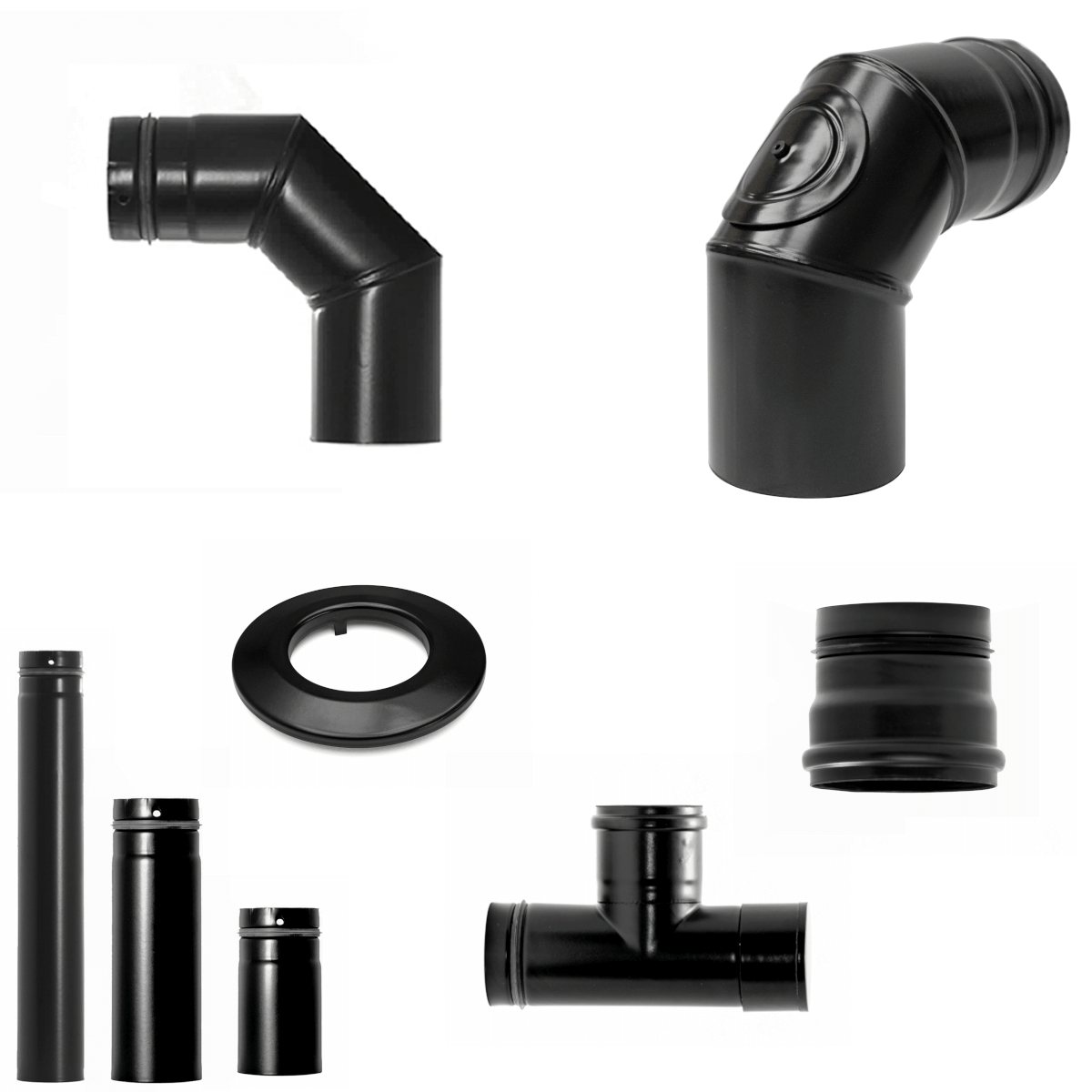 Flue pipe for pellet stoves (Ø 80 mm) They are generally used to remove toxic flue gases from living spaces. They are connected directly to the stove and direct the gases outside via the chimney. It is important to note that different fuels produce different flue gas temperatures, which results in different demands on the stove pipes.