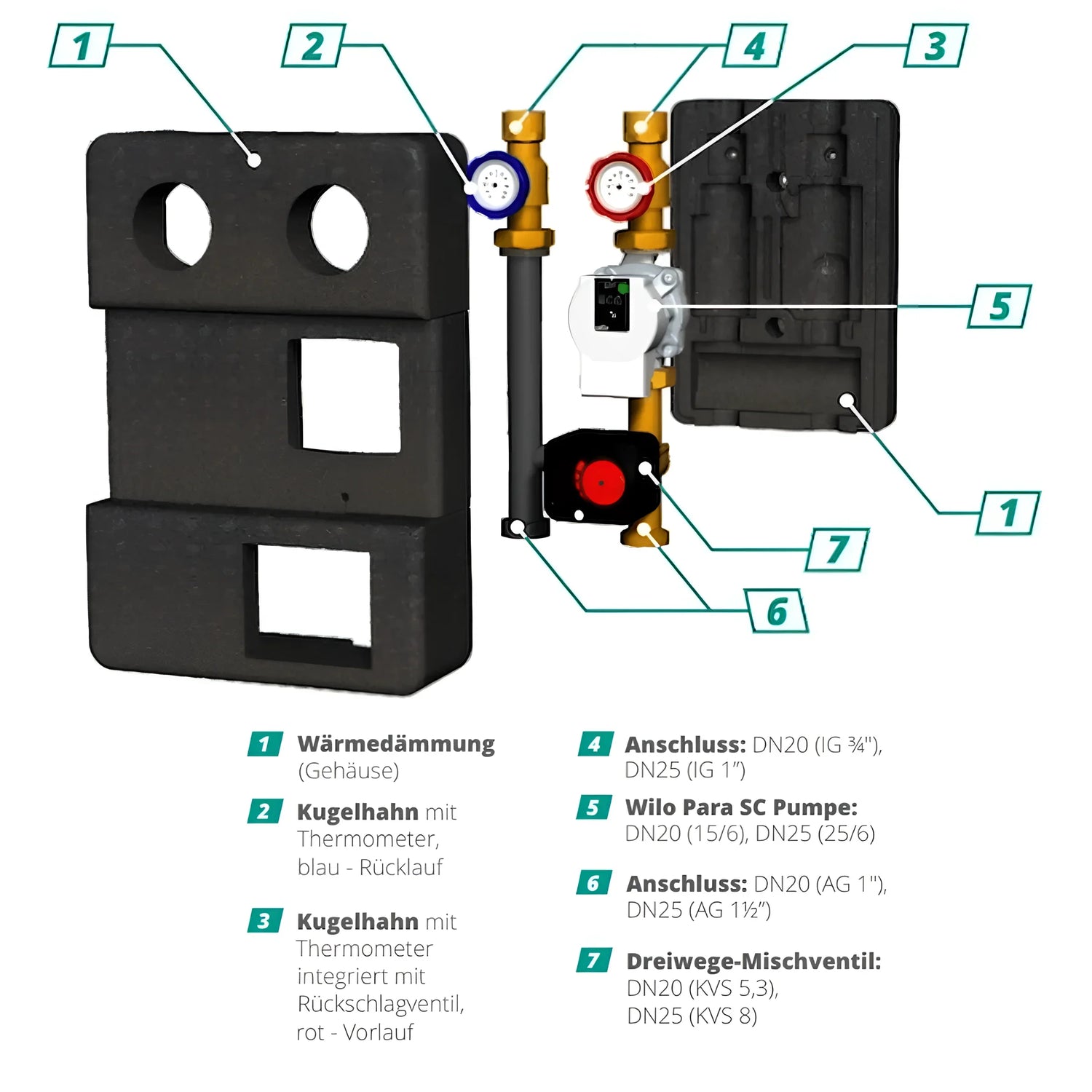 Efficient heating circuit distributor with pump group & Three-way mixer – Top at GEMA Shop