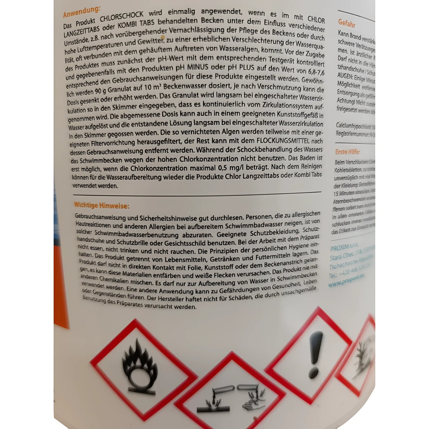 The advantages of Chlorschock Granules include their extremely effective disinfection and rapid dissolution in water. Their ability to rapidly combat algae, bacteria, and fungi makes them particularly attractive for use in swimming pools.