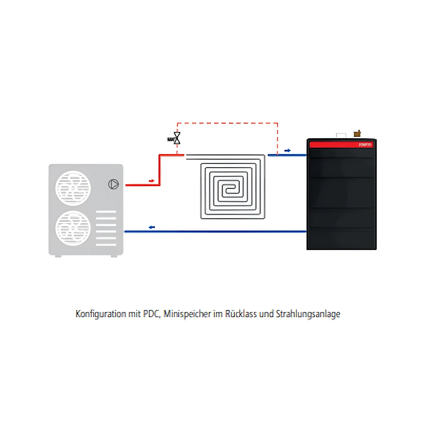 If a second heat source isn't available, an electric heating element with up to 3 kW can be integrated. This provides reliable backup heating and ensures operation even at low outside temperatures.