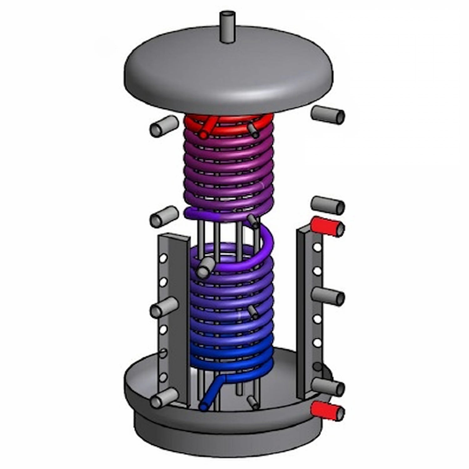 Il serbatoio di accumulo è realizzato in acciaio di qualità S235JRG2 conforme alla norma DIN 4753 e alla norma europea EN 12897, con interno grezzo ed esterno trattato con primer. Lo scambiatore di calore per acqua potabile è realizzato in tubo corrugato in acciaio inossidabile 1.4404 di alta qualità, prodotto in Germania, che offre un'ampia superficie per un'elevata produzione di acqua calda.