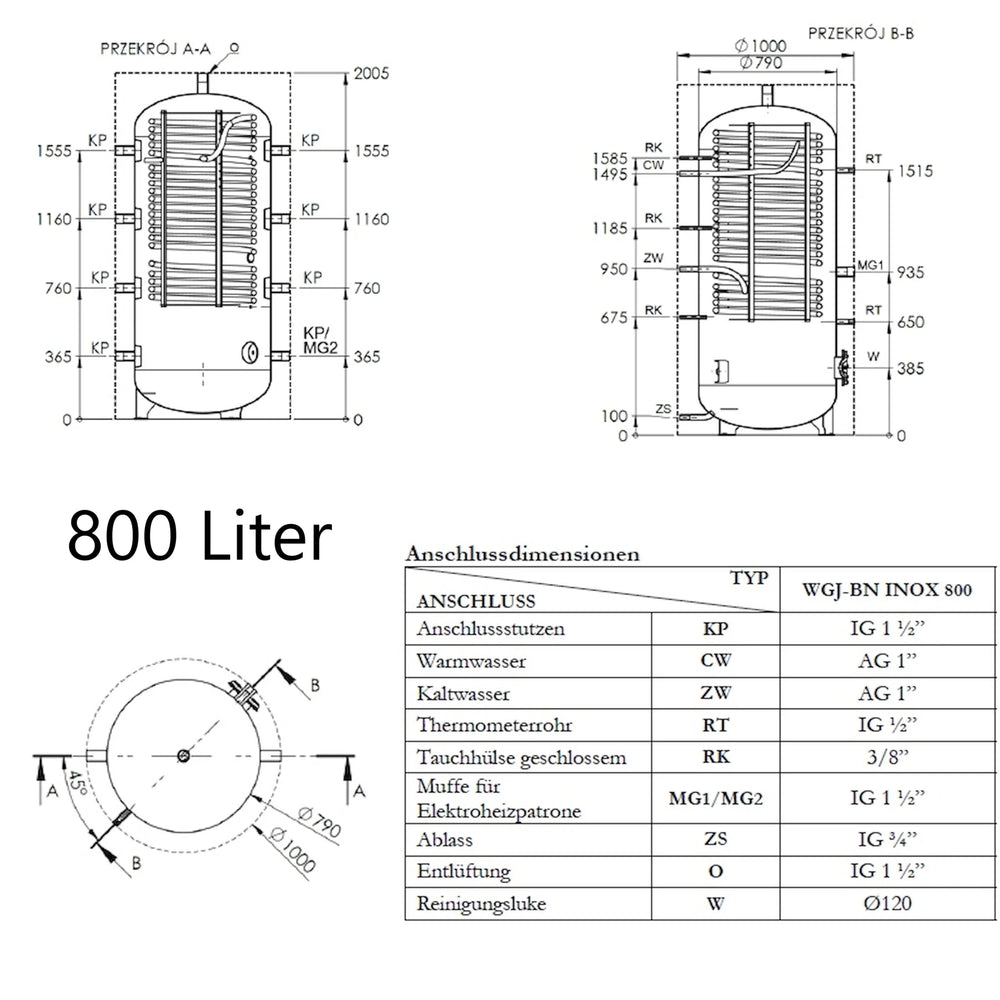 WGJ-BN INOX combină un rezervor tampon pentru încălzirea apei cu un încălzitor de apă caldă menajeră integrat. În interior, o țeavă ondulată din oțel inoxidabil acționează ca un schimbător de căldură, oferind o suprafață de contact mare pentru un schimb de căldură rapid și eficient și permițând încălzirea instantanee a apei. Presiunea maximă de funcționare a rezervorului este de 0,3 MPa.
