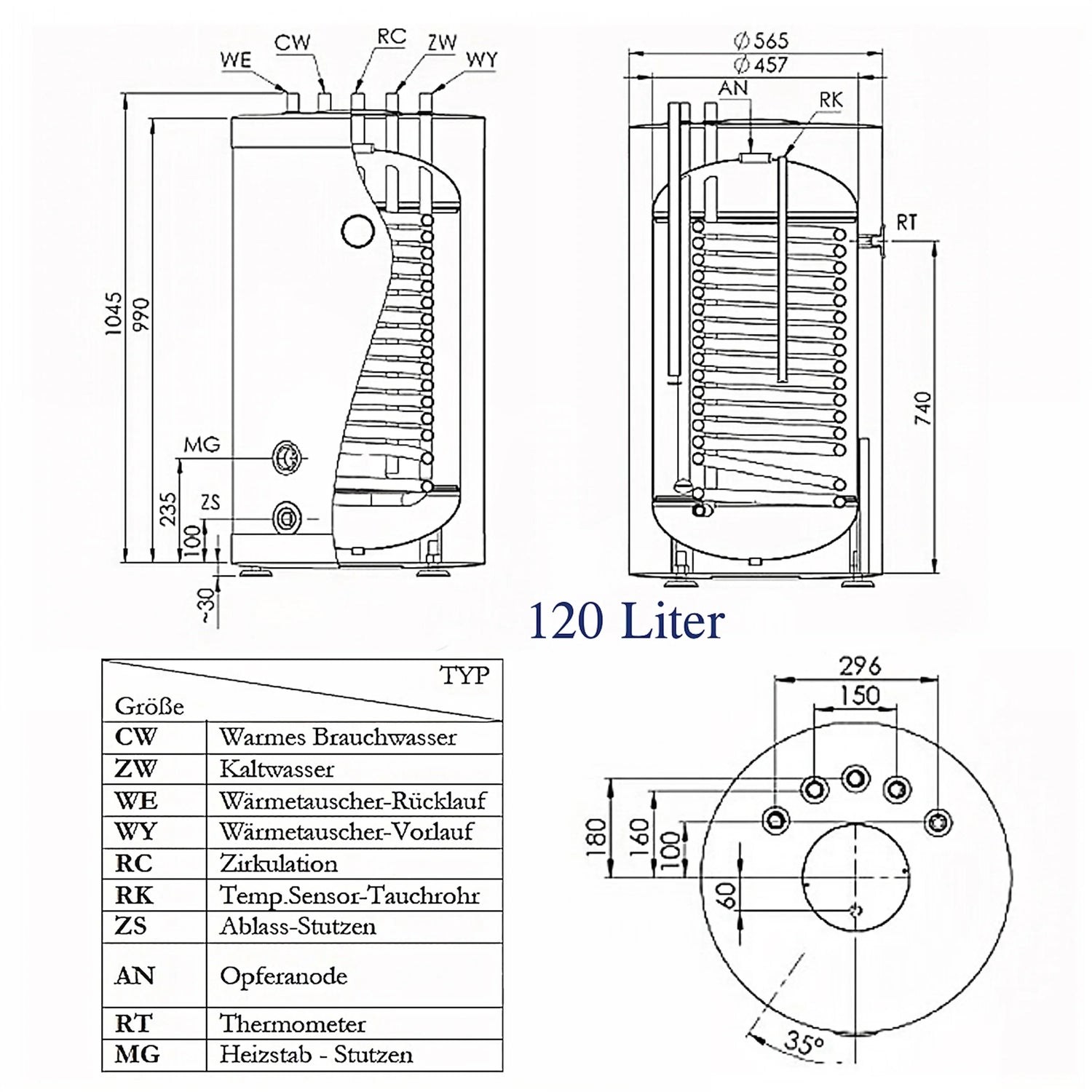 De Varmvattenberedare 100 l, 120 l eller 150 l med 1 värmeväxlare används för central och säker varmvattenuppvärmning.